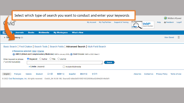 Log in to the OVID platform for NHS databases